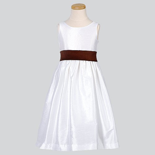 The Detailed Description of Baby Girls White Flower Girl Dress Brown Sash 3-6MFeatures