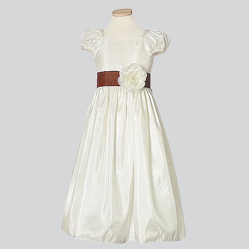 The Detailed Description of Girls Ivory Flower Girl Dress Chocolate Sash 3TFeatures